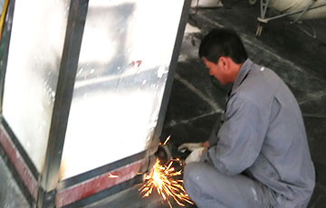 先前,为立柱包边角的工作基本上是维修工承接,但总有为数不多的立柱因为堆满了粉车无法及时加固。6月10号,洗衣粉喷粉郑恩惠班组,利用难得的停车机会,领料(5#角铁、扁铁)、下料、焊接(组员中有持证焊工),并磨光处理、刷好油漆,为所有楼层遗留的立柱穿上防撞铁甲。